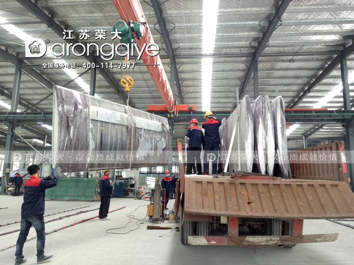 江蘇榮大在檢查工序時,如果在加工工序之間發現質量問題,要返回到上道工序返工。生產當中,榮大員工時刻注意設置質量檢查節點,并嚴格按照相關要求執行。這批公交候車亭已裝車完畢,準備發往山西。